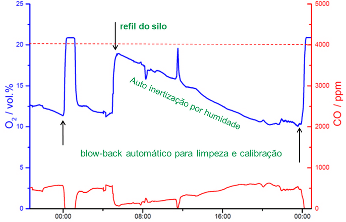 - Monitoramento rápido de incêndios latentes e inertização em silos;