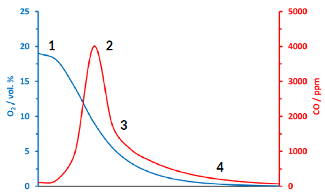O segundo gás mais importante molécula é O2 pois dá uma indicação das condições inertes no silo, e está sempre relacionado ao COe se um incêndio for presente. Se O2 e COe são medidos simultaneamente, incêndios latentes podem ser detectados e a eficiência da inertização é monitorada.