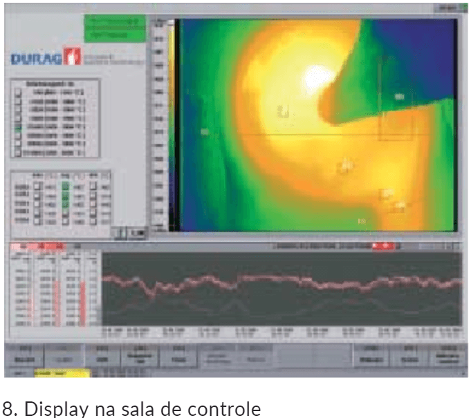 O uso dos Sensores DURAG dá ao operador do forno a capacidade de observar as condições do processo com grande detalhe visual, de analisar e interpretar a temperatura de praticamente qualquer objeto ou região de interesse (ROI = Região de Interesse) dentro do campo de visão do sistema.
